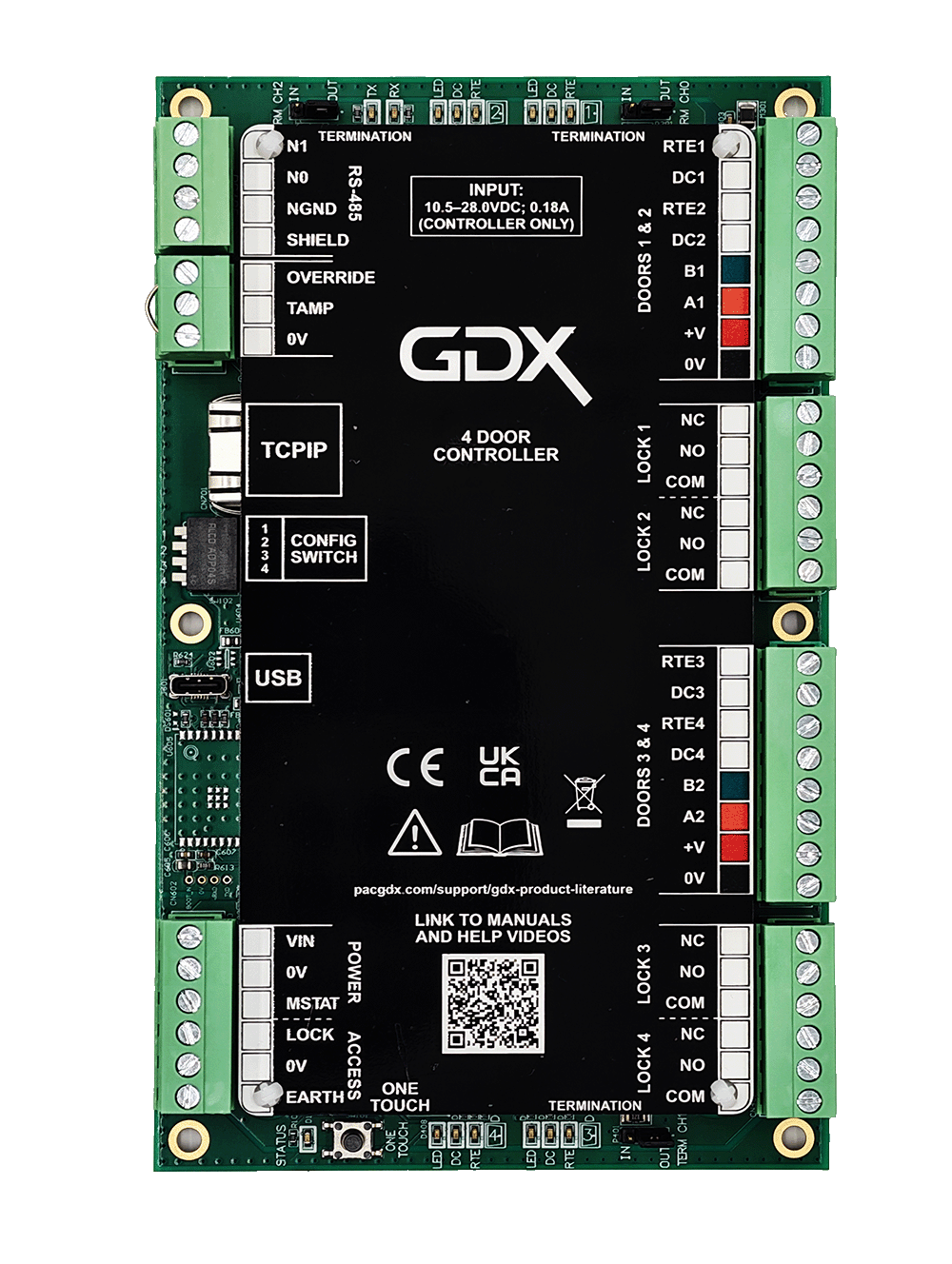 The GDX Controller is an intelligent 4door access controller designed to operate within the GDX Next ecosystem and can be managed either locally or via Housing Central, ComelitPAC’s cloudbased residential management platform. Each controller supports access control for up to four entrances, using either a GDX Entrance Panel or a Vandal Reader, and provides dedicated inputs for requesttoexit buttons, door contacts, and a voltfree 5 Amp fused relay that can be configured for powertolock or powertounlock operation.