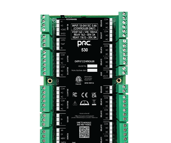 The PAC 530 Output Controller is a fully featured device that enables extension of the PAC access control system into additional access control and security management functions.